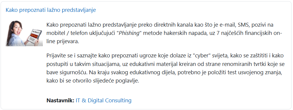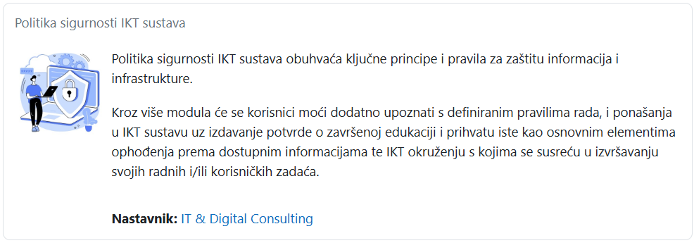 • Pristup gotovim edukacijama iz područja poslovanja, tehnologije, sigurnosti, jezika i ostalih tema, odmah dostupnih za korištenje i implementaciju u vašoj organizaciji.